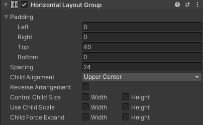 | Grid Layout Group | Horizontal Layout Group | Vertical Layout Group |