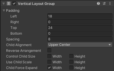 强制子元素扩展需要子元素直接填充完整个布局的情况,会强制拉伸子元素,可配合 LayoutElement 控制子元素的拉伸,可以用此实现菜单收起之类的功能