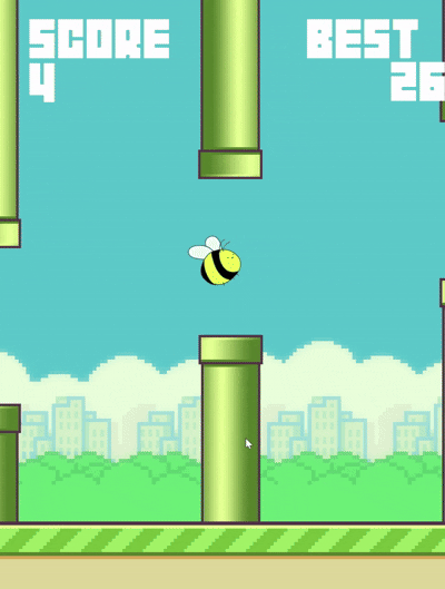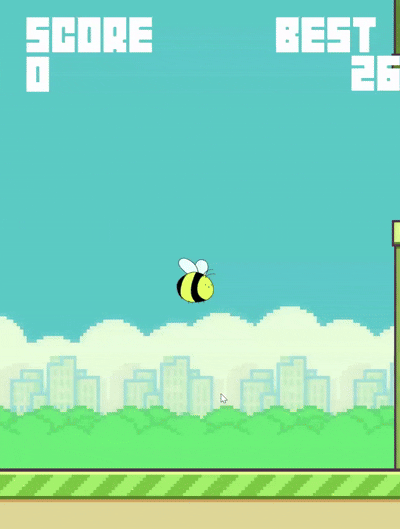 Unity2d 项目再尝试,复现了经典游戏 Flappy Bird 中的基本游戏操作,美术素材源自网络(但主角的小鸟图像被我替换为自己瞎画的蜜蜂……)